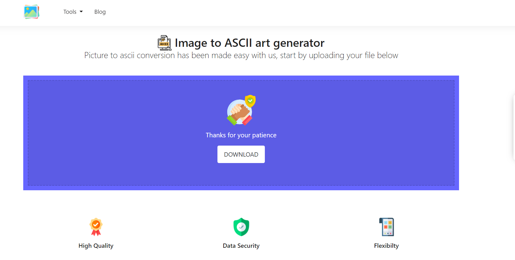 Our program translates images to ASCII format while maintaining their quality. None of your information is transferred to our servers, and all actions are completed within the browser. As a result, we can ensure that our users are completely safe.