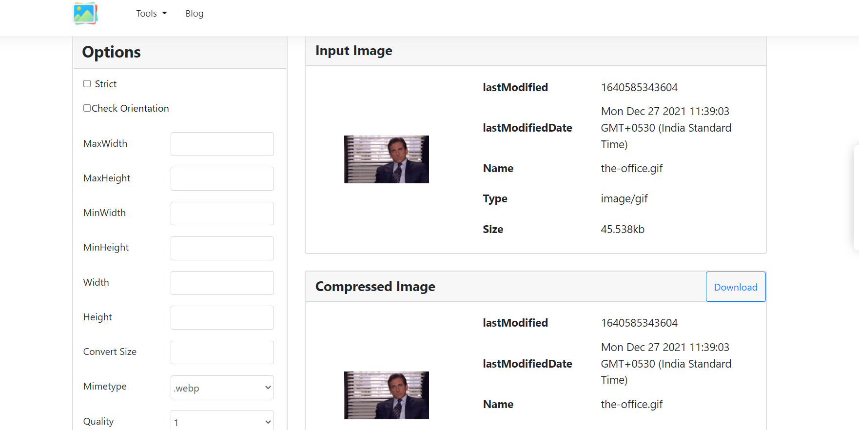 For precise and rotational adjustment, this function also includes a strict mode and an orientation mode. The GIF compressor also allows the user to alter the image’s quality and convert the image’s format to their favour. After we upload a GIF image to safeimagekit.com, the compression feature provides numerous characteristics, such as the image’s name, size, type, and so on.
