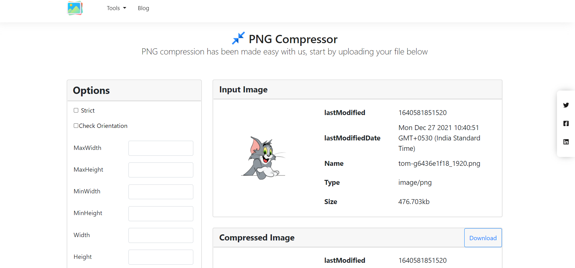 This picture compression tool also allows you to select a size for compression, which can be set to max or min depending on the image you’ve provided. For precise and rotational adjustment, this function also includes a strict mode and an orientation mode.